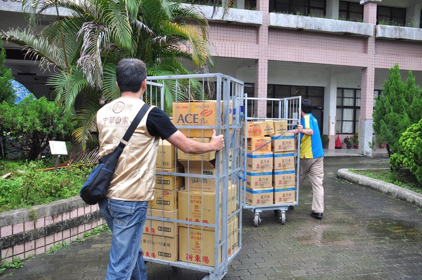▲協會以豐富的民生物資表達關懷之意,讓受贈民眾開心地滿載而歸。