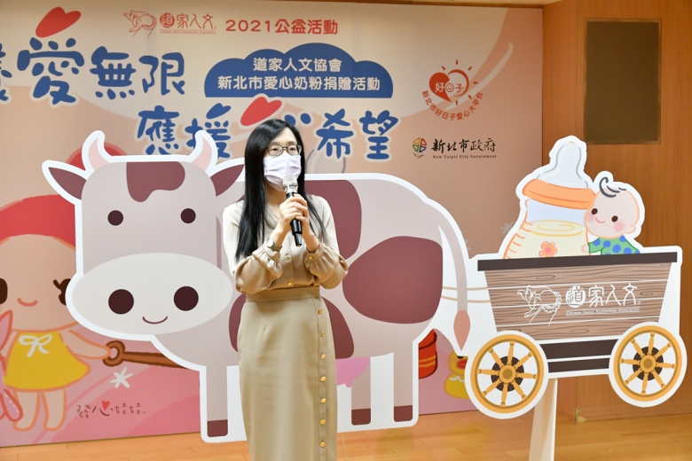 奶粉是寶寶成長的營養必需品,但對於弱勢家庭來說,卻是經濟上沉重的負擔。道家人文協會於2021年3月25日舉辦營養愛無限‧應援心希望~新北市社會局愛心奶粉捐贈活動,於兒童節前夕三度捐贈1320罐學齡前奶粉給新北市轄區內的弱勢婦幼家庭,並由新北市政府社會局張錦麗局長代表受贈,預計將有1000戶家庭受惠。